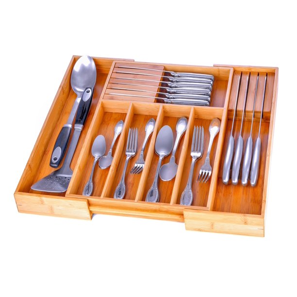 Bambusi Kitchen Storage Organizer 13 21 Inches Wide 2 Inches Deep 7 Compartments For Flatware Knife Sets Utensils Cutlery Cabinet Storage Organizer By Bambusi Walmart Com Walmart Com